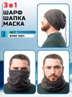 Шапка зимняя со снудом, комплект на флисе