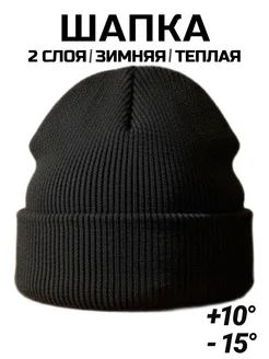 Шапка зимняя - весенняя вязаная теплая с отворотом