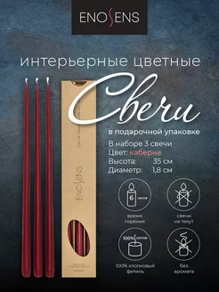 Свечи интерьерные набор 3 шт 35х1,8см, бордовый