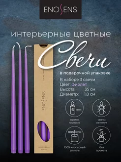 Свечи интерьерные набор 3 шт 35х1,8см, лавандовый