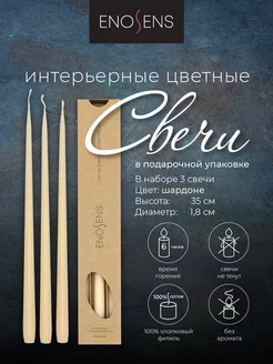 Свечи интерьерные набор 3 шт 35х1,8см, бежевые