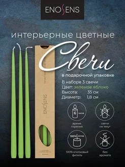 Свечи интерьерные набор 3 шт 35х1,8см, зеленые