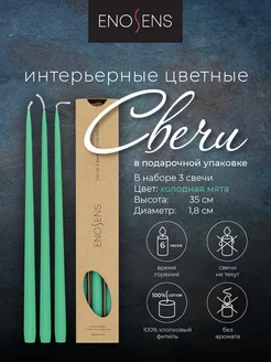 Свечи интерьерные набор 3 шт 35х1,8см, мятные