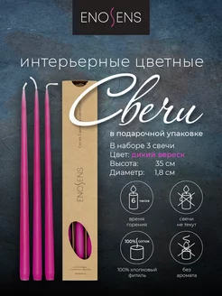 Свечи интерьерные набор 3 шт 35х1,8см, фуксия