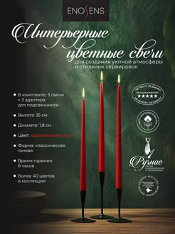 Свечи интерьерные набор 3 шт 35х1,8см, красные