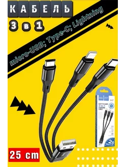 Кабель Провод для зарядки Андроид Айфона 25 см 3 в 1