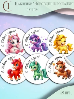 Наклейки матовые «Новогодние лошадки», 40 мм, 48 шт