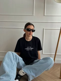 Футболка с надписью оверсайз хлопок