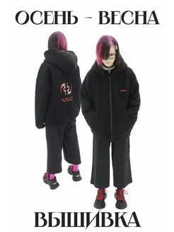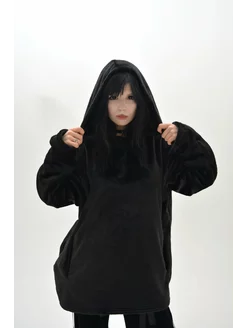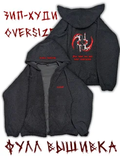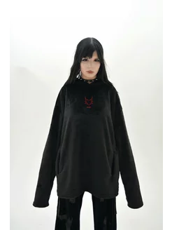худи плюш (велсофт) с вышивкой и принтом оверсайз