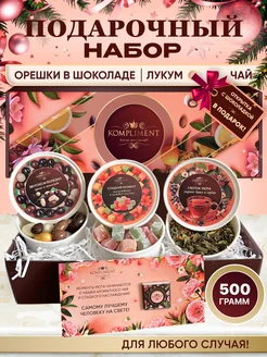 Набор сладостей подарочный, чай и орешки в шоколаде