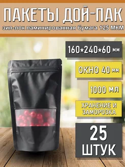 Дой-пак с окном пакеты пищевые с зип лок 160х240 мм, 25 шт