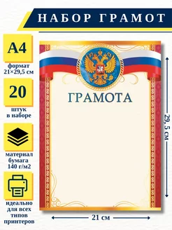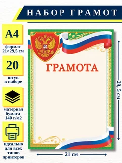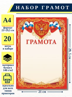 Грамота красная с гербом и флагом РФ, А4, 20 шт НБГ 24.007