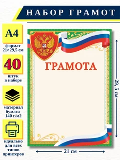 Грамота зеленая с гербом и флагом РФ, А4, 40 шт НБГ 24.004