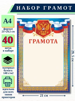 Грамота синяя с гербом и флагом РФ, А4, 40 шт НБГ 24.005