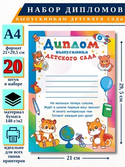 Диплом выпускника детского сада, А4, 20 шт НБГ 24.013