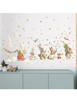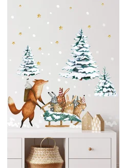 Наклейки на окна новогодние Лиса и семеро зайчат
