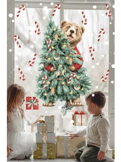 Наклейки на окна " Медведь и елка "
