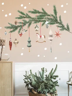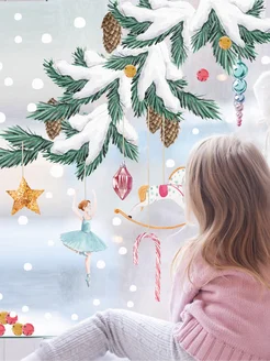 Наклейки на окна новогодние Веточка с игрушками