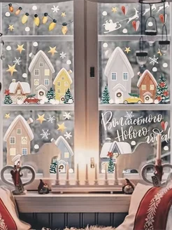 Наклейки на окна новогодние Снежный город