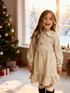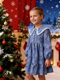 Платье с длинным рукавом и воротником в садик нарядное