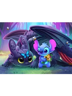 Алмазная мозаика Стич и Беззубик 35*45 размер выкладки