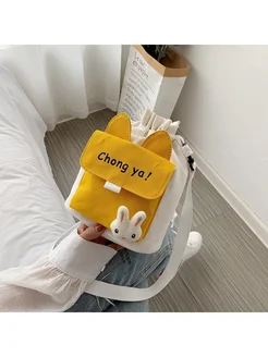 Холщовая мини сумка-мешок с карманом и брошью зайка