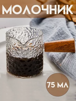 Молочник стеклянный с деревянной ручкой, мерный