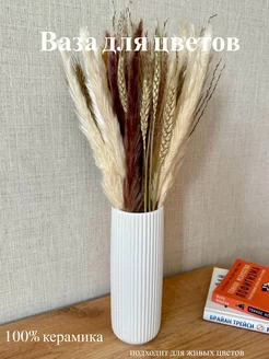 Керамическая ваза ребристая для живых цветов и сухоцветов