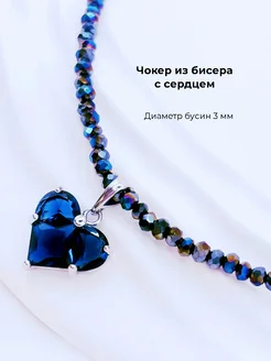 Чокер - бусы на шею синий колье с сердцем бижутерия
