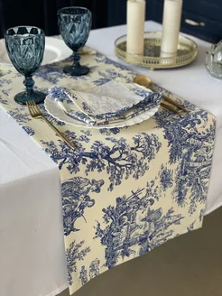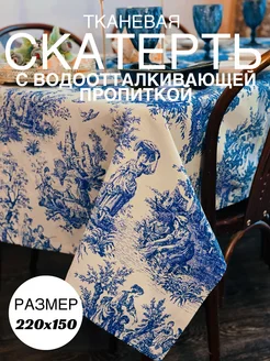 Скатерть Туаль Де Жуи с пропиткой, синяя, 220х148