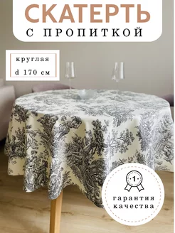 Скатерть Туаль Де Жуи с пропиткой, серая, круглая, D170см