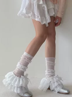 косплей лолита складные сетчатые гетры с кружевом и бантом