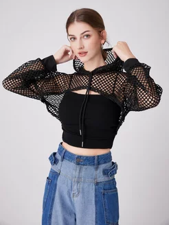 съемный воротник худи в сетку с лонгсливом и шнуровкой