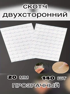 Скотч круглый двусторонний прозрачный клеевые точки 140 штук