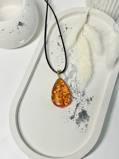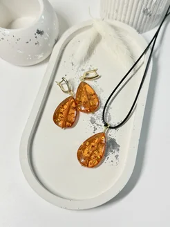 Кулон на шею из натурального янтаря (набор кулон и серьги)