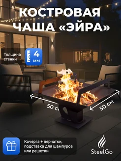 Костровая чаша с зольником 4 мм, очаг для костра 50х50см