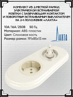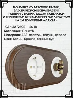 Комплект из ретро розетки и выключателем с рамкой на 2 места