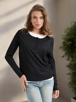 Лонгслив двухслойный с пуговицами кофта обманка