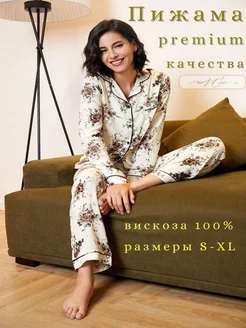 Пижама со штанами и рубашкой домашний брючный костюм для дам