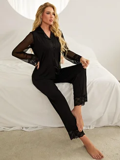 Пижама со штанами и рубашкой с ажурным кружевом комплект
