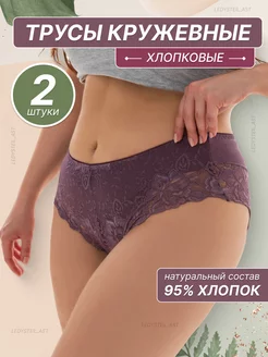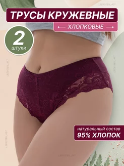 Трусы хлопковые кружевные бразильяно комплект 2 шт