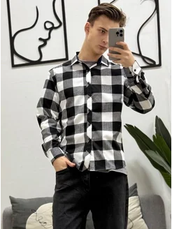 Рубашка в клетку с длинным рукавом теплая