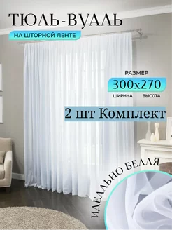 Комплект 2 шт Тюль вуаль белая 300 на 270 см готовая