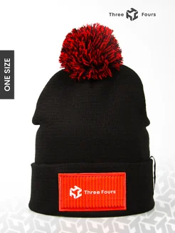 Шапка зимняя с помпоном вязаная шерстяная 444 BASE BLACK