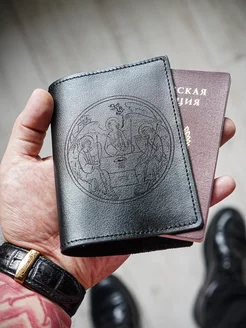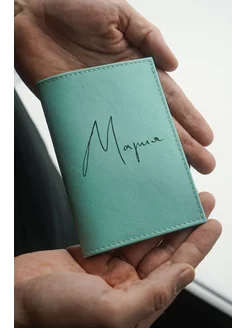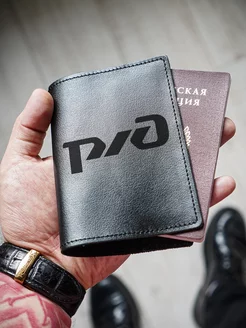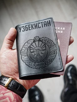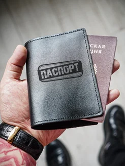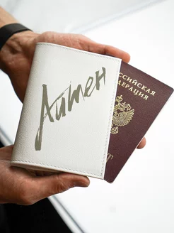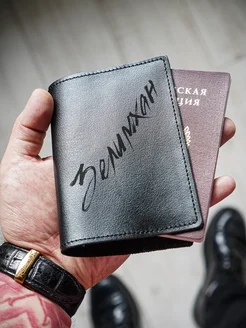 Кожаная обложка на паспорт черная с именем Зелимхан