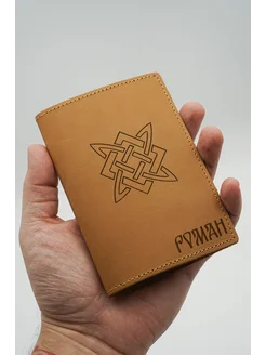Обложка на паспорт кожаная знак Руси Сварог имя Роман