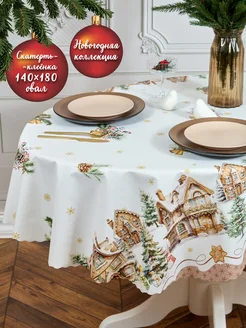 Скатерть клеенка новогодняя на стол овальная 140*180