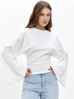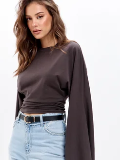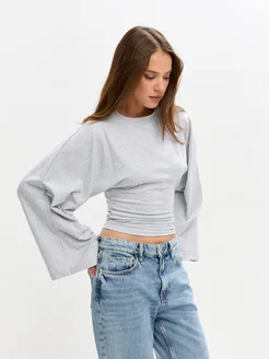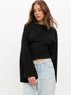 Лонгслив оверсайз приталенный с рукавами летучая мышь