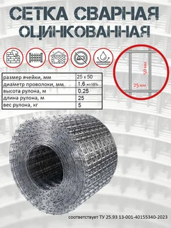 Сетка сварная оцинкованная 25х50 1,6 0,25х25м (рул6,25м2)