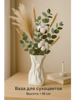 Ваза для сухоцветов интерьерная из гипса белая 16 см